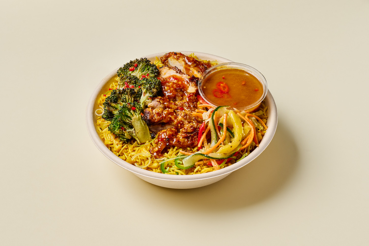 Cauliflower Biryani, Honey Masala Chicken or Tamarind Tofu (VE), Charred Cumin + Miso Broccoli, Kaana Slaw, Lime + Chilli Vinaigrette