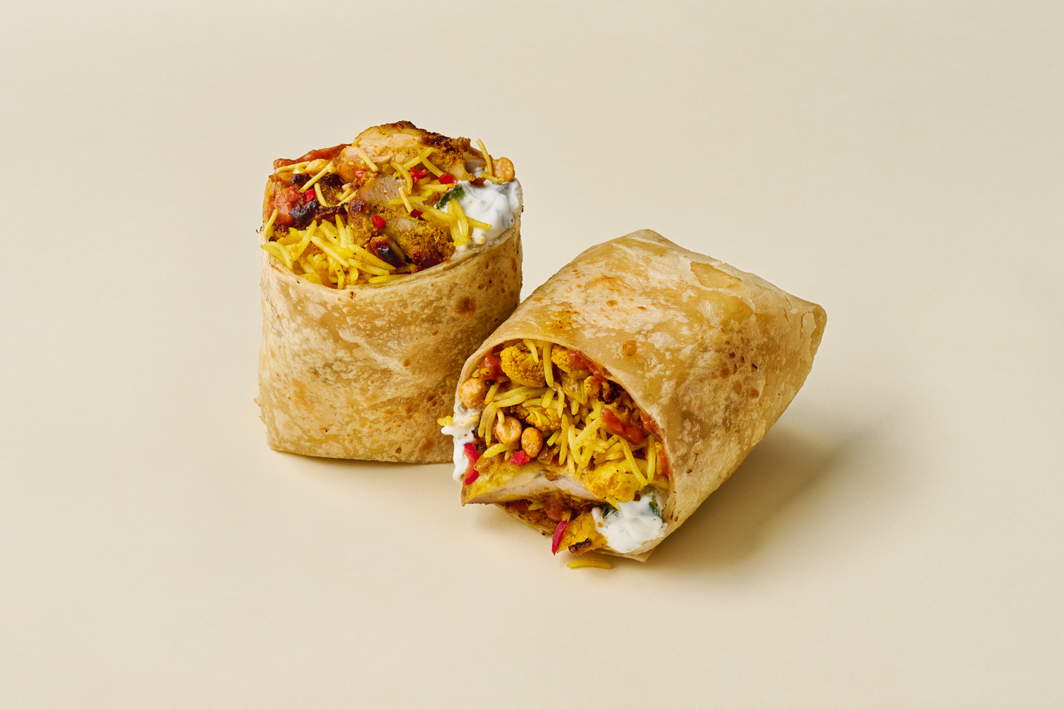 Shredded Cabbage and Spinach, Honey Masala Chicken, Kaana Slaw, Coriander Chutney, Kaana Crunch